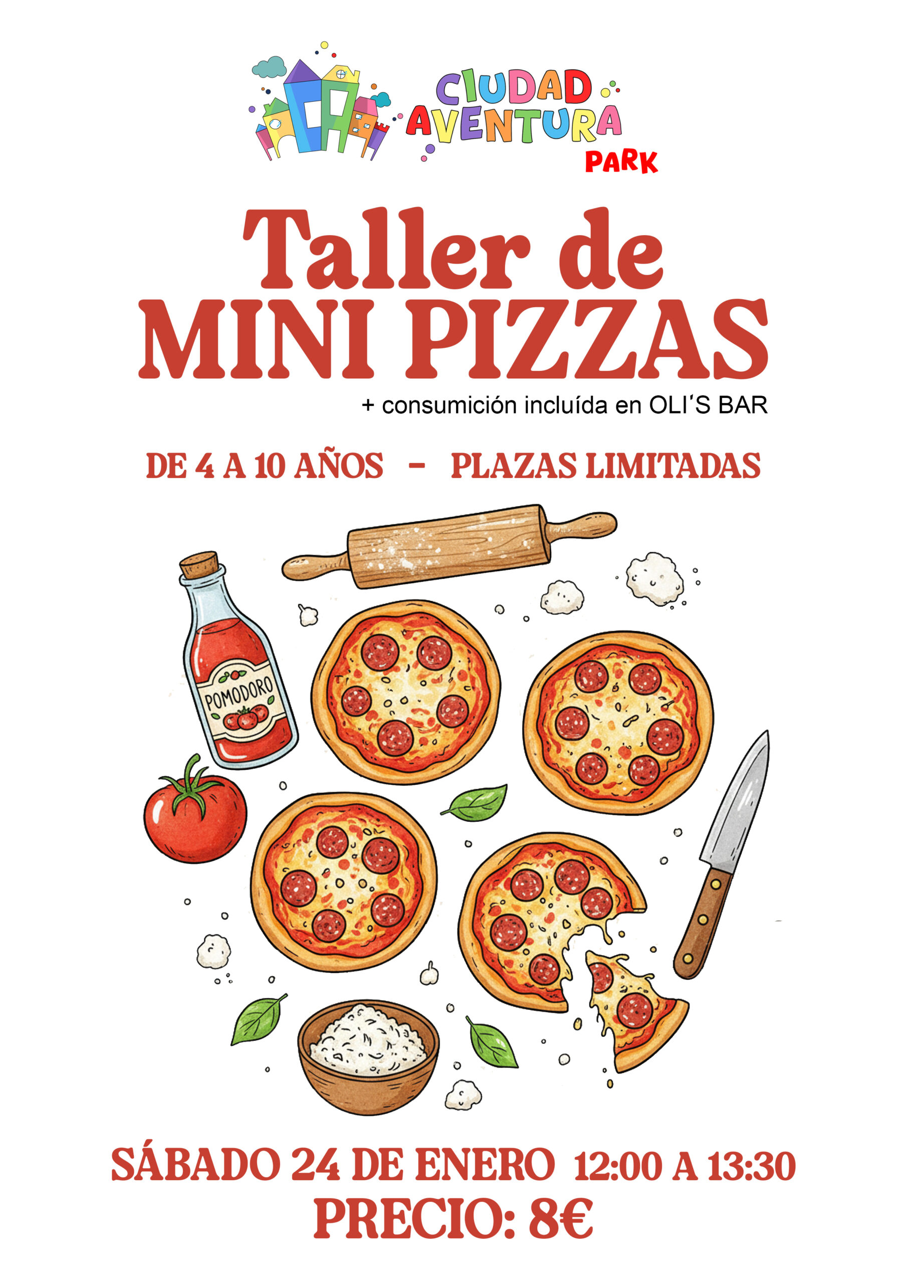 Divertido taller para que los más peques de la casa puedan aprender a elaborar una buena pizza. Si anotas a tú peque tienes una consumición ¡GRATIS! en OLI`S BAR.